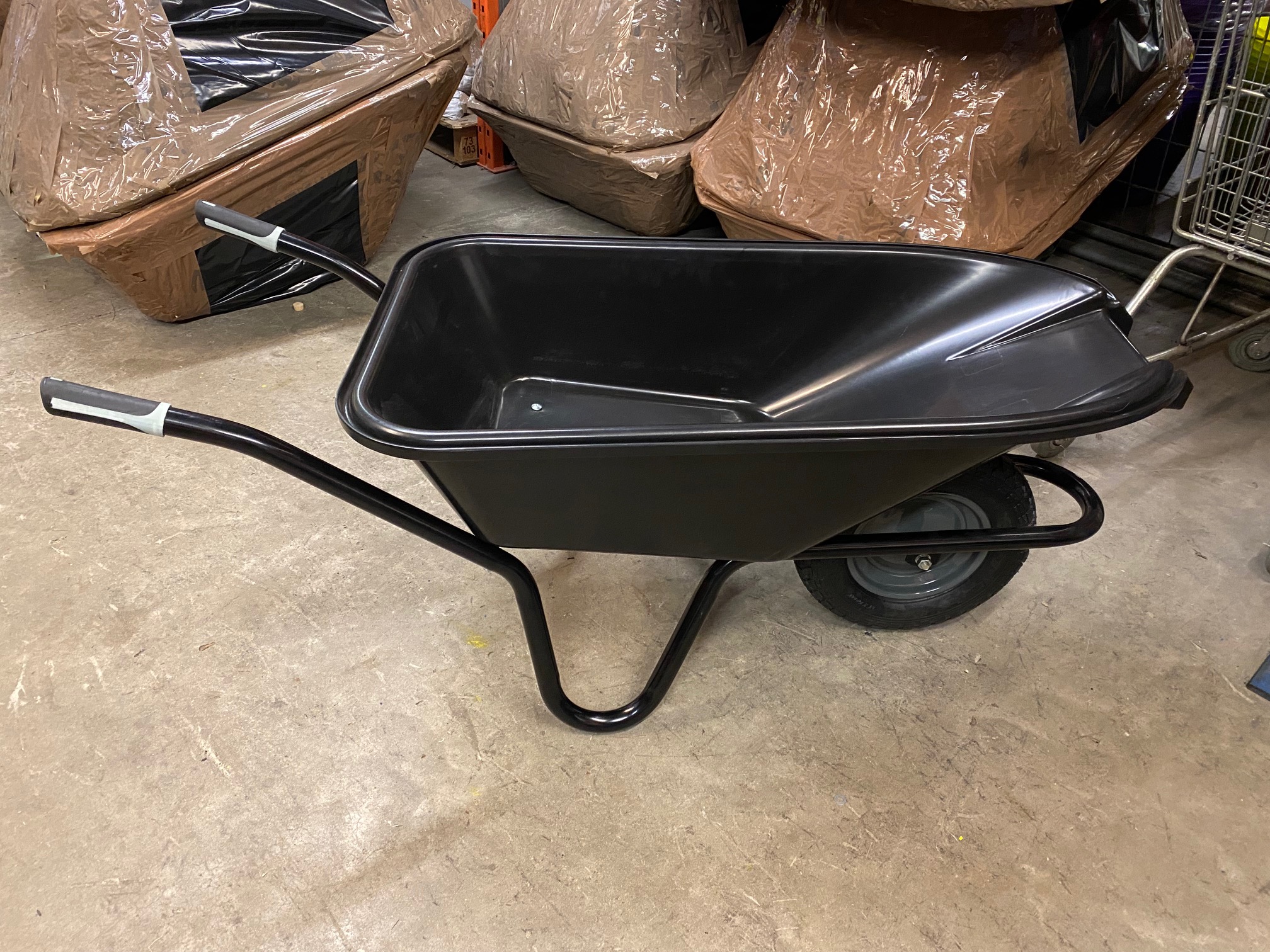 Black Builders Wheelbarrow 90ltr Metal Tray